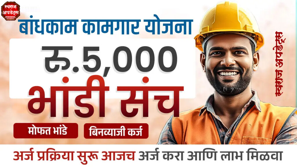 बांधकाम कामगार योजना ही महाराष्ट्र सरकारच्या कामगार कल्याण विभागाकडून चालवली जाते. नुकतेच, 2025 साठी या योजनेसाठी अर्ज प्रक्रिया सुरू झाली आहे. या योजनेचा लाभ घेण्यासाठी संघटित क्षेत्रातील सर्व बांधकाम कामगार ऑनलाइन किंवा ऑफलाइन पद्धतीने अर्ज करू शकतात. यामुळे बांधकाम कामगारांना या योजनेचा लाभ सहजपणे घेता येईल.
