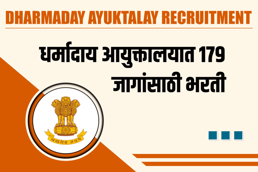 (Dharmaday Ayuktalay Recruitment) धर्मादाय आयुक्तालयात 179 जागांच्या भरतीची जाहिरात प्रसिद्ध झाली असून, भरतीसाठी आवश्यक शैक्षणिक पात्रता, वयोमर्यादा, परीक्षा शुल्क , नोकरीचे ठिकाणी, अर्ज करण्याची पद्धत, अर्ज करण्यासाठी लिंक , GR PDF, अधिकृत वेबसाईट इ . माहितीसाठी खालील माहिती पूर्ण वाचावी.
