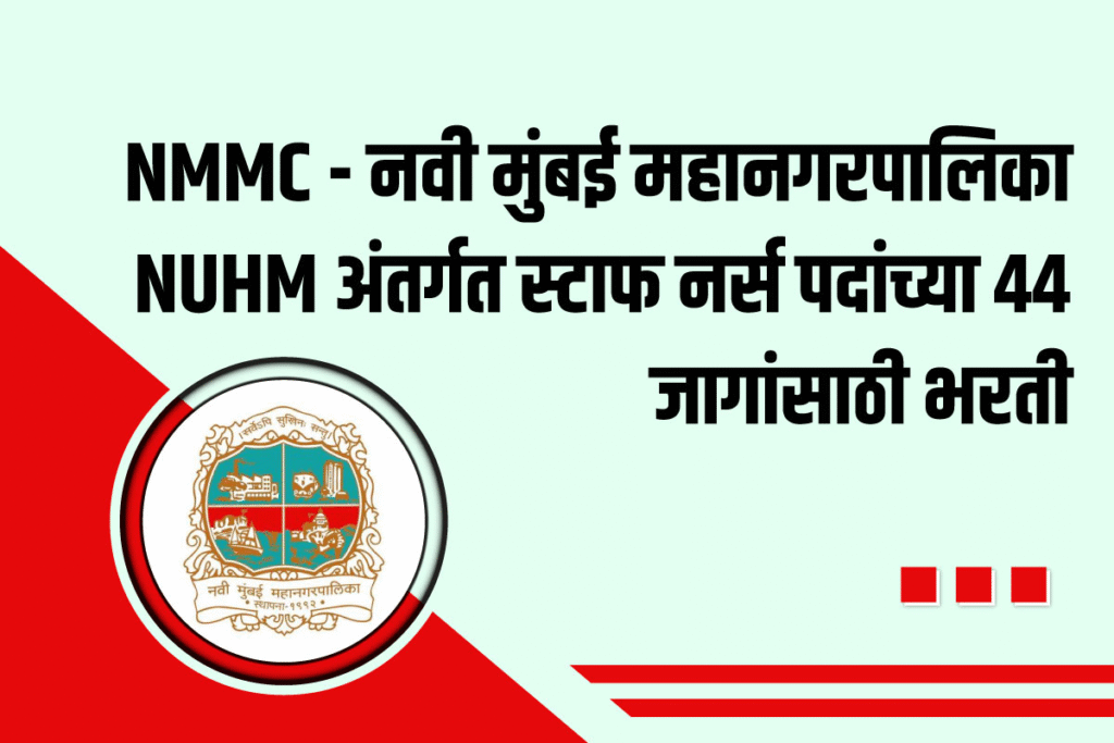 (NMMC Recruitment) नवी मुंबई महानगरपालिका NUHM अंतर्गत स्टाफ नर्स पदांच्या 44 जागांसाठी भरतीची जाहिरात प्रसिद्ध झाली असून, भरतीसाठी आवश्यक शैक्षणिक पात्रता, वयोमर्यादा, परीक्षा शुल्क , नोकरीचे ठिकाणी, अर्ज करण्याची पद्धत, अर्ज करण्यासाठी लिंक , GR PDF, अधिकृत वेबसाईट इ . माहितीसाठी खालील माहिती पूर्ण वाचावी.