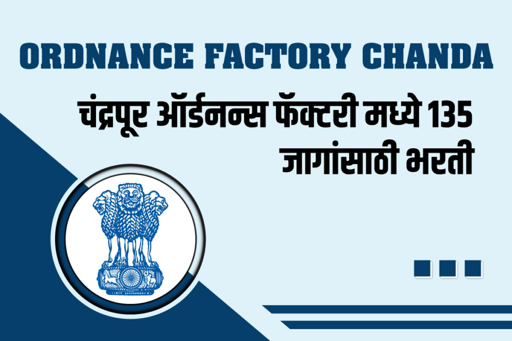 (Ordnance Factory Chanda Recruitment) चंद्रपूर ऑर्डनन्स फॅक्टरी मध्ये 207 जागांच्या भरतीची जाहिरात प्रसिद्ध झाली असून, भरतीसाठी आवश्यक शैक्षणिक पात्रता, वयोमर्यादा, परीक्षा शुल्क , नोकरीचे ठिकाणी, अर्ज करण्याची पद्धत इ . माहितीसाठी खालील माहिती पूर्ण वाचावी.