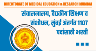 Read More »(DMER) संचालनालय, वैद्यकीय शिक्षण व संशोधन, मुंबई अंतर्गत 1107 पदांसाठी भरती
