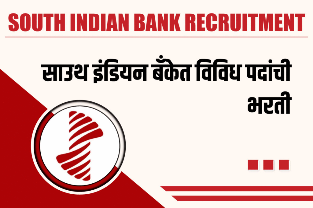 (South Indian Bank Recruitment) साउथ इंडियन बँकेत विविध पदांच्या भरतीची जाहिरात प्रसिद्ध झाली असून, भरतीसाठी आवश्यक शैक्षणिक पात्रता, वयोमर्यादा, परीक्षा शुल्क , नोकरीचे ठिकाणी, अर्ज करण्याची पद्धत, अर्ज करण्यासाठी लिंक , GR PDF, अधिकृत वेबसाईट इ . माहितीसाठी खालील माहिती पूर्ण वाचावी.
