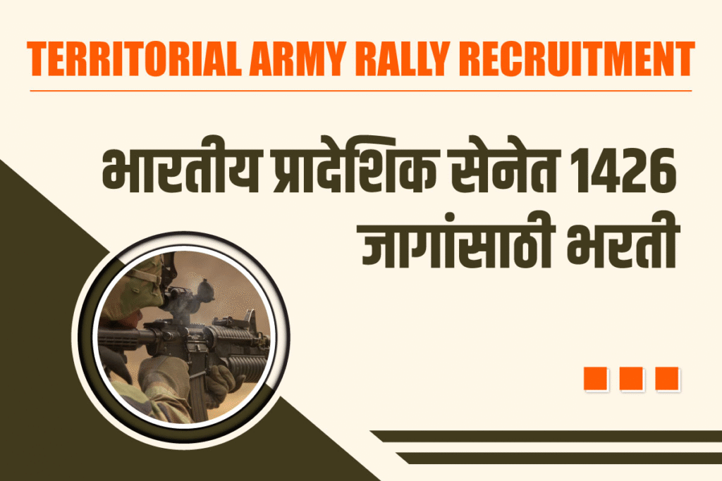 (Territorial Army Rally) भारतीय प्रादेशिक सेनेत विविध पदांच्या 1426 जागांच्या भरतीची जाहिरात प्रसिद्ध झाली असून, भरतीसाठी आवश्यक शैक्षणिक पात्रता, वयोमर्यादा, परीक्षा शुल्क , नोकरीचे ठिकाणी, अर्ज करण्याची पद्धत इ . माहितीसाठी खालील माहिती पूर्ण वाचावी.